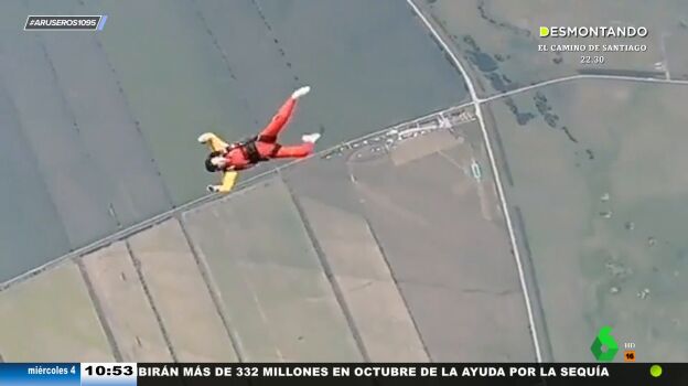 Una paracaidista pierde el control en un salto y su instructor se lanza a más de 200 km/h para salvarle la vida