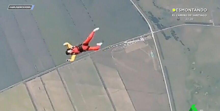 "Las imágenes ponen los pelos de punta", advierte Arthur Arús. Esta mujer se precipita al vacío dando vueltas en todas las direcciones, a más de 200 km/hora sin ningún tipo de control. Es incapaz de abrir su paracaídas, como puede comprobarse en este impactante vídeo emitido en Aruser@s.