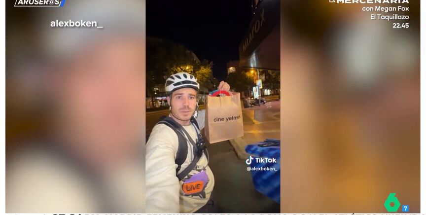 Un repartidor comparte en TikTok el sorprendente pedido nocturno de una pareja: unas palomitas de cine a domicilio. Alfonso Arús confiesa, entre risas, que "es una antojazo que también pediría".