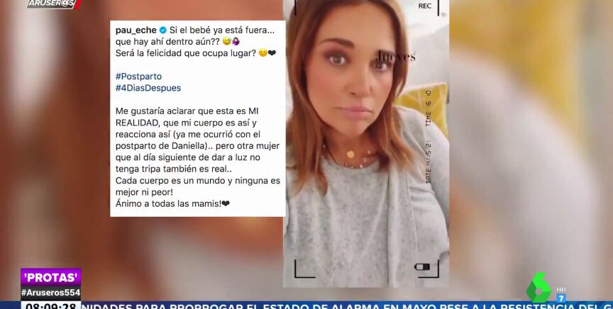 En este vídeo de Aruser@s puedes ver cómo está la barriga de Paula Echevarría tras dar a luz. Ella ha mandado un mensaje de ánimo a todas las madres.