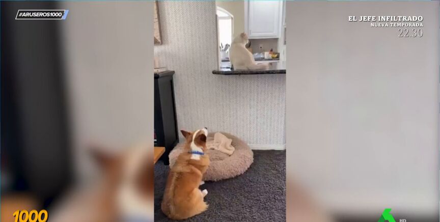 ¿Quién dice que los perros y los gatosno se llevan bien? No sabemos si tratará solo de interés, de una relación estrictamente laboral o si entre ellos habrá genuino cariño, pero lo cierto es que los animales que protagonizan este vídeo viral emitido en Aruser@s se complementan a la perfección, aunque solo sea para organizar un robo.
