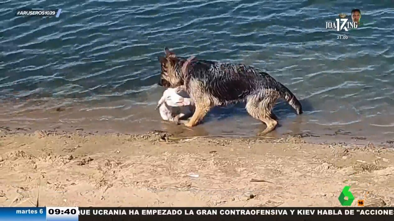 Un perro pastor rescata a un cordero que se estaba ahogando en un río