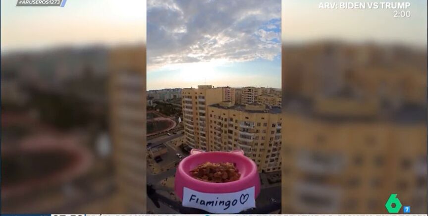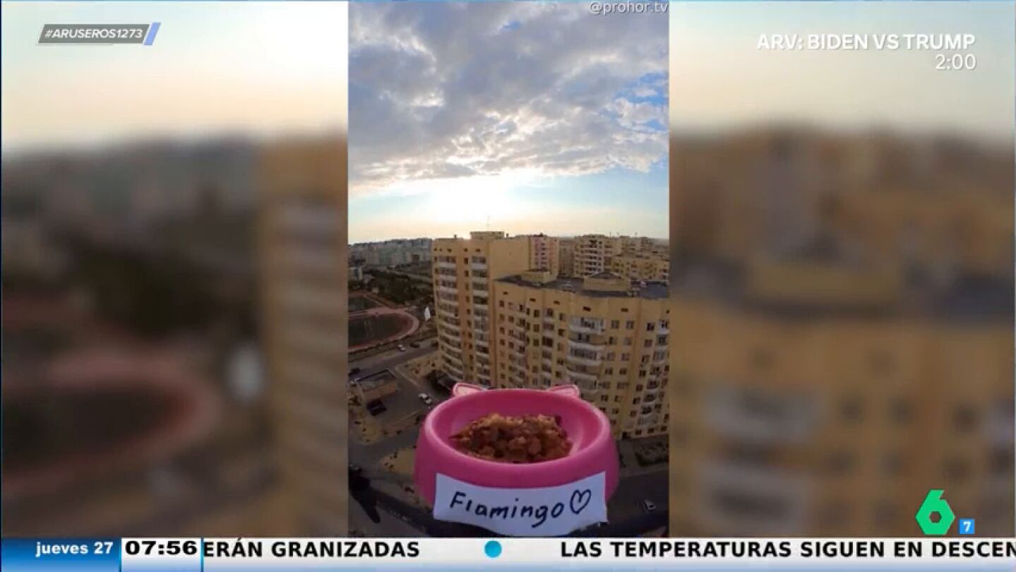 Una persona decide alimentar a los gatos 'a domicilio' llevándoles la comida con un dron