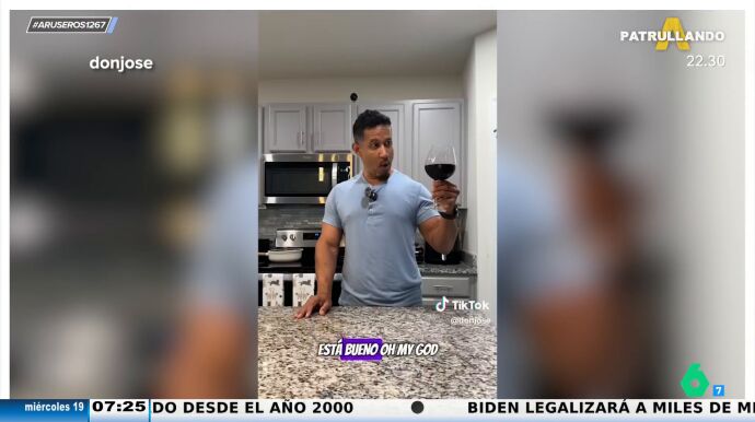 Un creador de contenido dominicano ve un vídeo en TikTok de un hombre que muestra cómo se hace el kalimotxo. Al hombre le sorprende que una bebida mezcle vino tinto con coca cola y decide grabarse probándola por primera vez. "Los ingredientes son simples, vino, poco porque tú sabes que no me quiero poner muy rulay y ahora coca cola", explica mientras lo prepara.