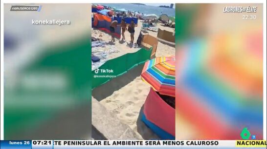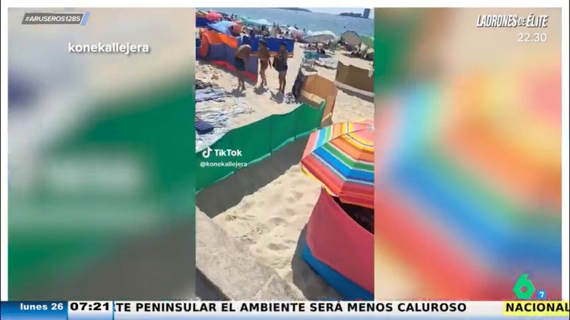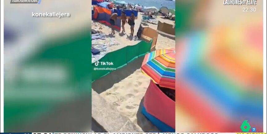 En Vigo, un viral vídeo en laplaya ha causado polémica en redes. Como se puede ver en las imágenes que ha traído Alfonso Arús al plató, los bañistas de una playa de Vigo han colocado parcelas para acotar su zona y así tener un espacio limitado para ellos en el arenal. Par ello utilizan cortavientos, lo que genera una privatización del espacio.