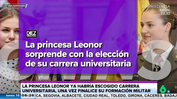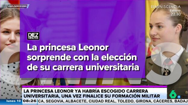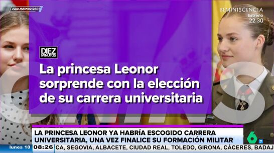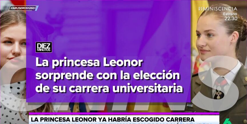 Alfonso Arús destaca en el plató de Aruser@ que "la princesa Leonorya habría escogido carrera universitaria una vez finalice su formación militar" en Zaragoza. "Por lo visto, no va a seguir los pasos de su padre", afirma Tatiana Arús, que explica en el vídeo principal de esta noticia que el rey Felipe eligió Derecho.