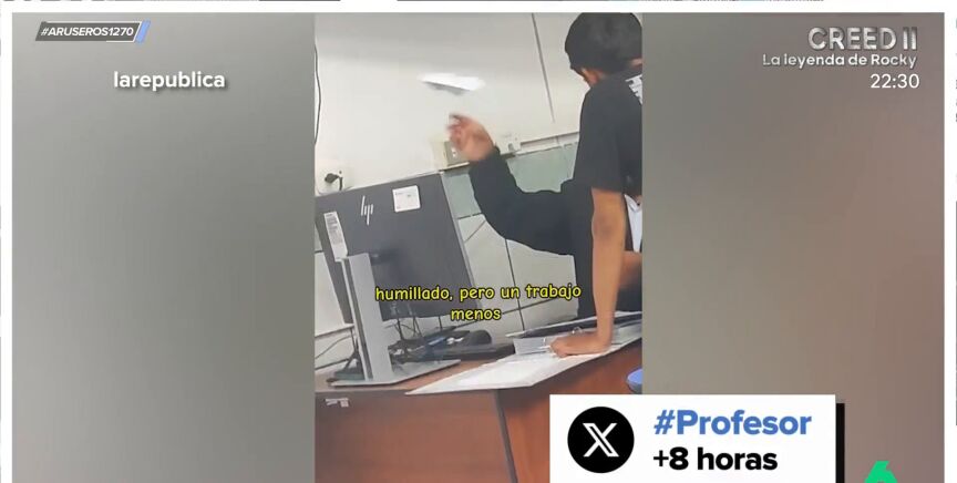 En Perú, un profesor es muy criticado tras viralizarse en TikTok un vídeo en el que hace un avión de papel con el trabajo de un alumno. En el plató de Aruser@s alucinan con esta falta de respeto en público al joven.