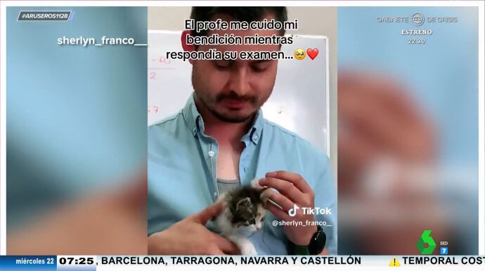"¿Tú no crees que es una estrategia para que el profesor esté distraído con el gatito y así sacar la chuleta y copiar?", reflexiona Tatiana Arús. "O qué diga 'qué gatito tan mono' y al final, pues mira, acaba aprobando", añade Alfonso Arús.