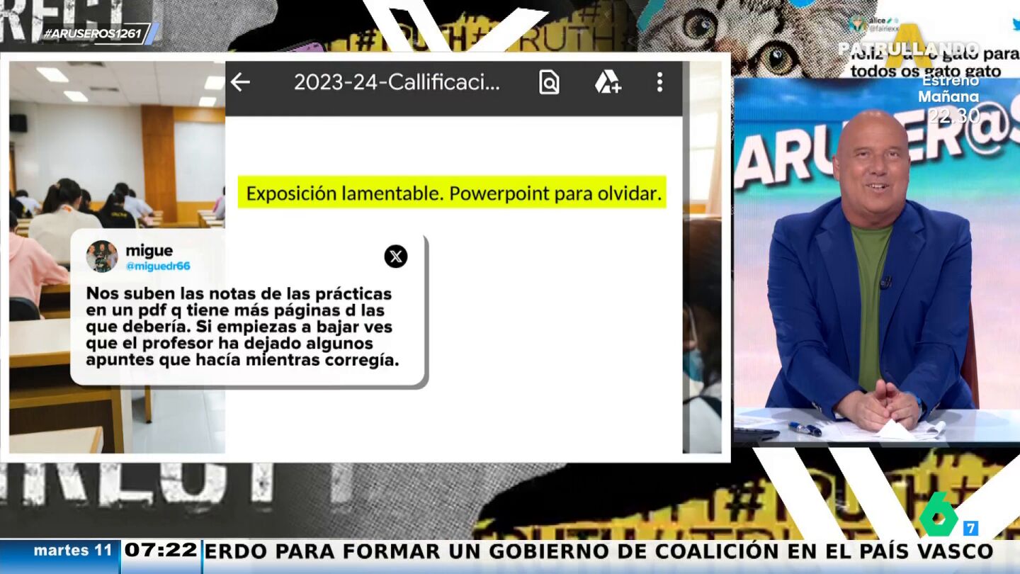 Un profesor sube las notas de los trabajos prácticos de sus alumnos pero se olvida de borrar sus comentarios. En las correcciones los jóvenes pueden leer la opinión más sincera de su maestro sobre sus entregas. El fallo sale a la luz después de que un alumno suba un tweet explicándolo. "Exposición lamentable. Power Point para olvidar", son los comentarios sobre el trabajo de este joven.