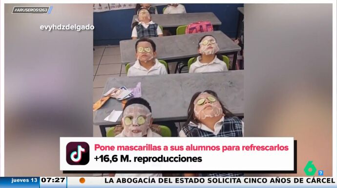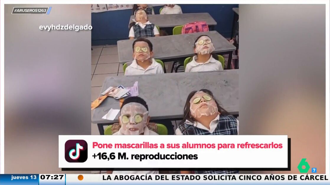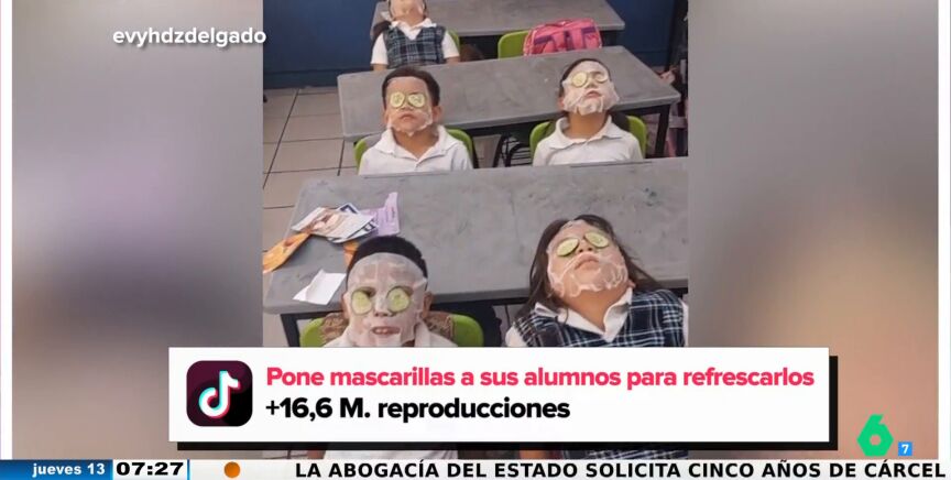 Una profesora mejicana se viraliza en TikTok y consigue más de 16 millones de reproducciones. La mujer decide poner mascarillas faciales con rodajas de pepinos en los ojos a sus alumnos para combatir las altas temperaturas que está haciendo en el país americano.