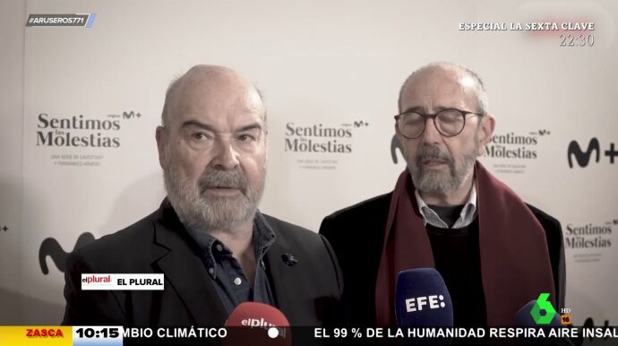 "Es muy duro estar ahí en el hospital currando. Yo he sido enfermo de los que te tienen que levantar tres tíos y llevarte al baño, limpiarte, lavarte...", comentó el actor ante la atenta mirada de Miguel Rellán. Además, Resines lanzó una dura crítica a las empresas que contratan a estos trabajadores: "Y pagan una puta mierda, vamos".