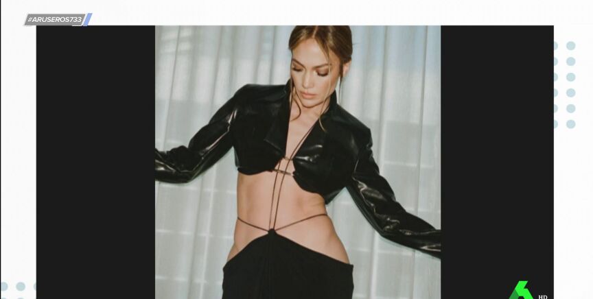 El equipo de Aruser@s ha buscado qué significa exactamente midriff flossing, la moda a la que se ha unido Jennifer López y que consiste en vestir con tiras diminutas rodeando el viente que sirven "para estilizar las curvas". Patricia Benítez ha dado con la mejor traducción: "Hilo dental en el estómago".