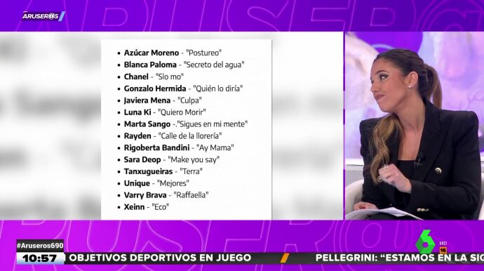 Tatiana Arús desvela en este vídeo todos los candidatos que optan a representar a España en Eurovisión en el 2022. Entre ellos están las Azúcar Moreno y otros nombres conocidos como Rigoberta Bandini, o Rayden. Aquí te mostramos la lista completa.
