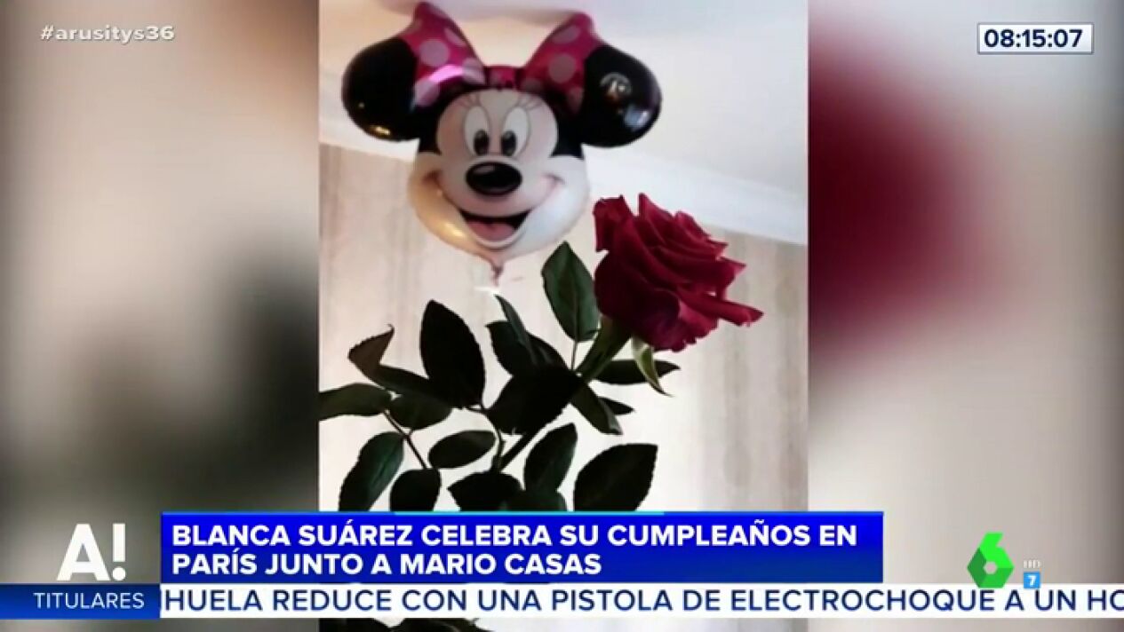 La actriz Blanca Suárez ha celebrado su 30 cumpleaños en París junto a Mario Casas. La pareja deja así de jugar al despiste, haciendo públicas sus imágenes en Instagram. En las capturas se ve a Casas sonriendo junto a Mickey Mouse y a Suárez disfrutando de la Torre Eiffel encendida.