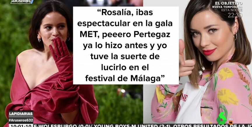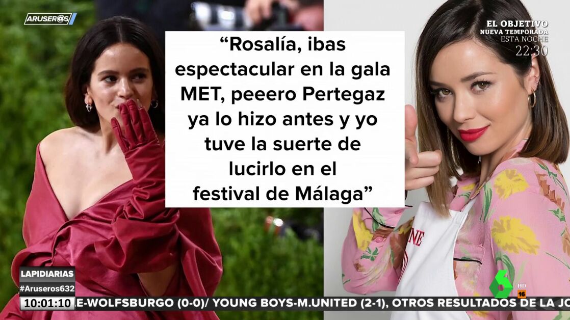"Rosalía, ibas espectacular en la Gala Met, pero Pertegaz ya lo hizo antes y yo tuve la suerte de lucirlo en el Festival de Málaga", ha dicho.
