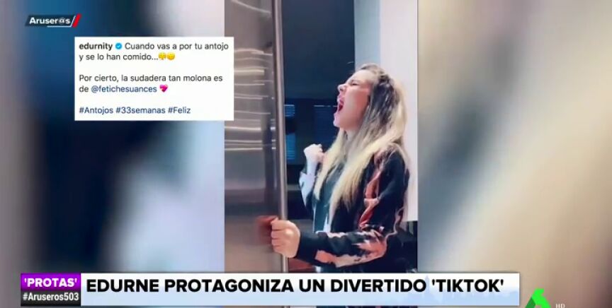 Edurne se encuentra en la recta final de su embarazo y ha deleitado a sus seguidores con un divertido vídeo en el que muestra cómo se 'enfada' cuando no encuentra en la nevera el antojo que desea.