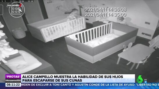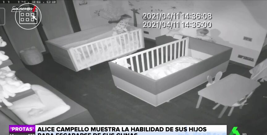Las cámaras de la vivienda han captado a los mellizos trepando por sus cunas para escapar de ellas mientras simulaban dormir la siesta. Vemos el momento en este vídeo de Aruser@s.