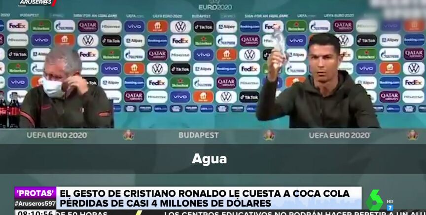 El gesto de Cristiano Ronaldo en el que retiró dos botellas de Coca-Cola durante una rueda de prensa de la Eurocopa ya se ha convertido en viral. Mientras el jugador rechazaba el refresco y animaba a beber agua, Coca-Cola caía en picado en la bolsa.