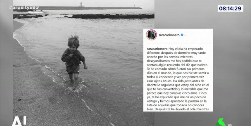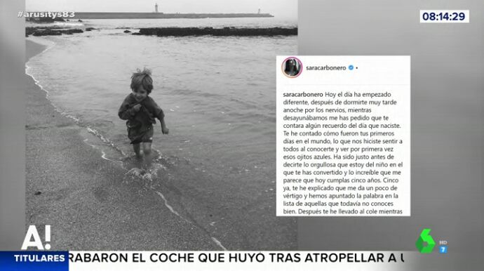 Sara Carboneroha compartido una imagen con un emotivo texto dedicado a su hijo Martín en su quinto cumpleaños.