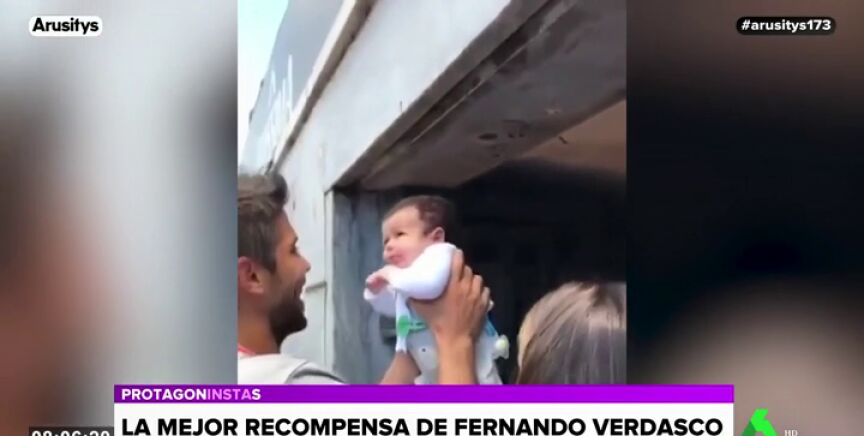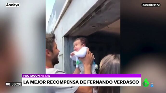 Tras dejarse todo en la pista, Ana Boyer y su hijo Miguel le recibieron para felicitarle. Al verles, Verdasco dio un beso a su mujer y cogió al pequeño "como si fuera el rey León", comentan los colaboradores de Arusitys.
