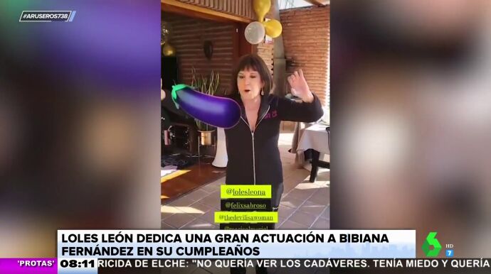 La actriz atrajo la atención de todos los invitados con una particular actuación. Con la espontaneidad que la caracteriza, Loles León se arrancó a cantar su canción 'Qué ganas tengo'. En el vídeo que acompaña a la noticia puede verse y escucharse esta particular composición de alto contenido erótico.