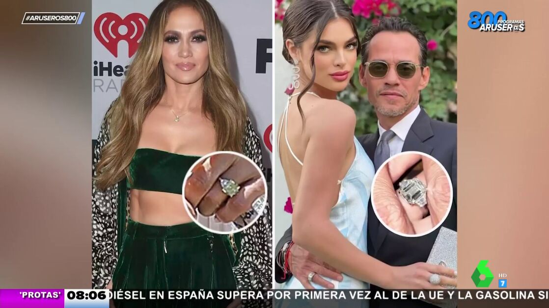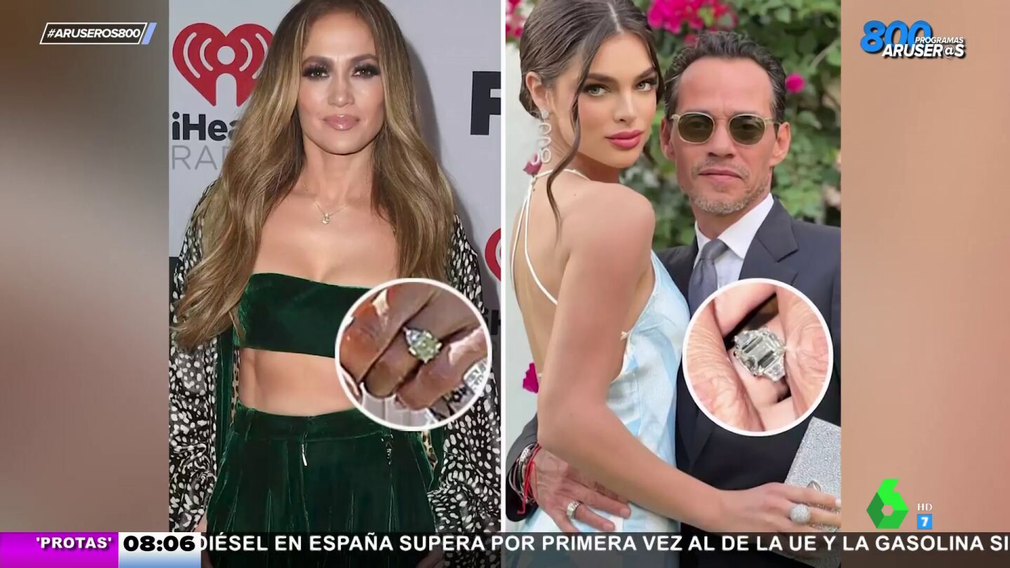 En el vídeo que acompaña a estas líneas puede verse la joya de JLo, cuyo diamante azul supera con mucha diferencia el valor del anillo de Nadia Ferreira. Por otro lado, la foto compartida con la nueva prometida de Marc Anthony ha mostrado cómo el artista ha decidido tapar un tatuaje de las iniciales de su expareja.