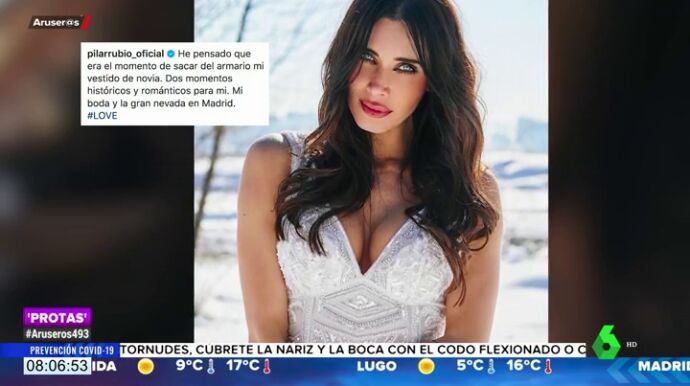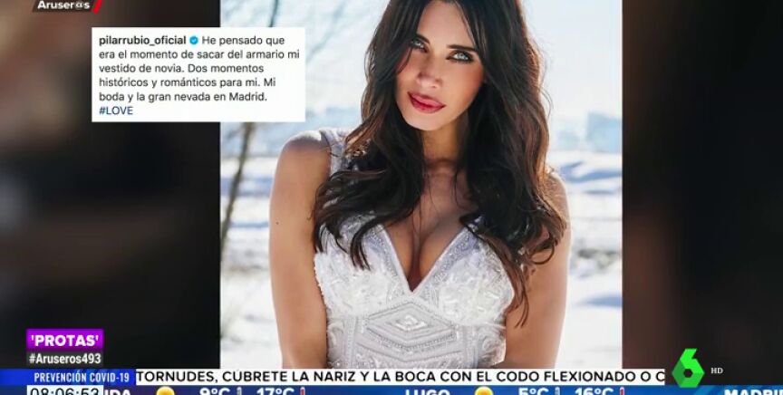 "He pensado que era el momento de sacar del armario mi vestido de novia. Dos momentos históricos y románticos para mi. Mi boda y la gran nevada en Madrid", ha comentado en redes sociales la colaboradora.