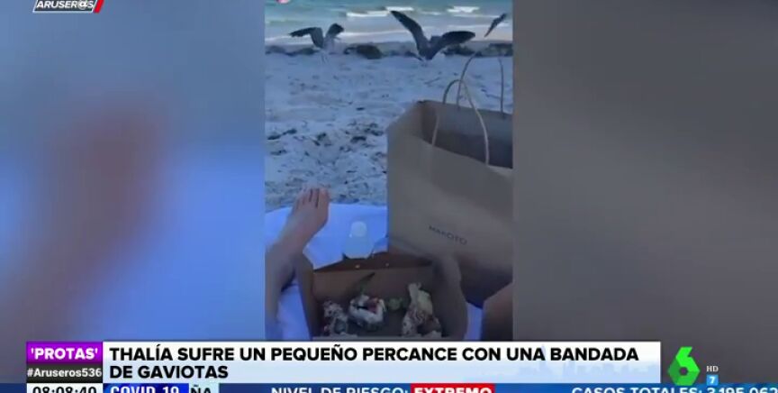 La cantante estaba disfrutando de una comida en la orilla del mar cuando sufrió un percance con varias gaviotas. Lo vemos en este vídeo de Aruser@s.