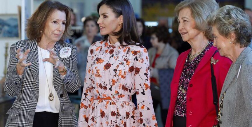 Tras seis años de ausencia, la actual monarca ha visitado junto a su suegra el rastrillo madrileño donde se ha sido muy comentado el vestido midi de flores de Hugo Boss en color rosa que lucía, la complicidad que se veía entre ambas y las compras de Navidad 'low cost' que han realizado.