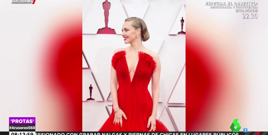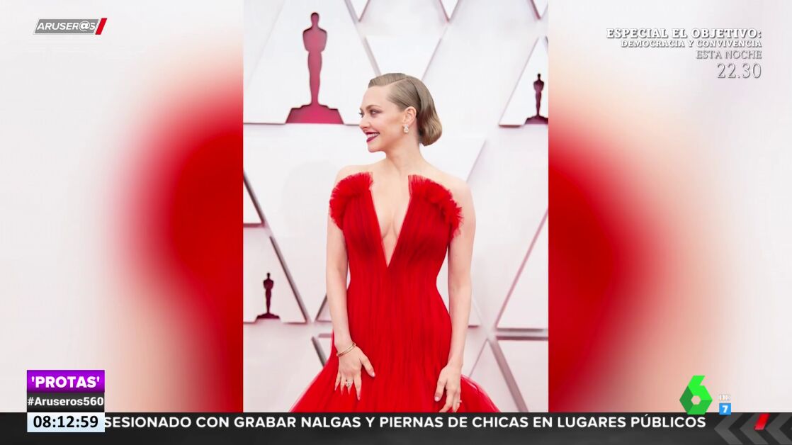 Uno de los vestidos más comentados de la gala de los Oscar ha sido el de Amanda Seyfried, con un diseño de Armani con escote uve y en gasa color rojo.