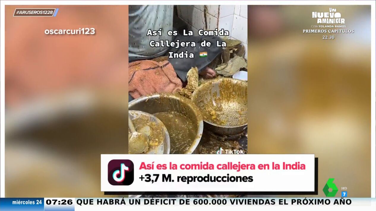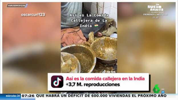 El creador de contenido, @oscarcuri123 decide probar la comida de la India, pero no la que se sirve en un restaurante, va a probar la callejera. "Yo creo que esto de acá se ve un poco raro", comenta cuando ve un puesto con una perola con muy mala pinta. También expone lo cerca que están los puestos de comida de las basuras. "No sé si será higiénico comerlo...", se cuestiona el hombre que decide probar una especie de pan. "Esto no es pan, es aceite", se queja.