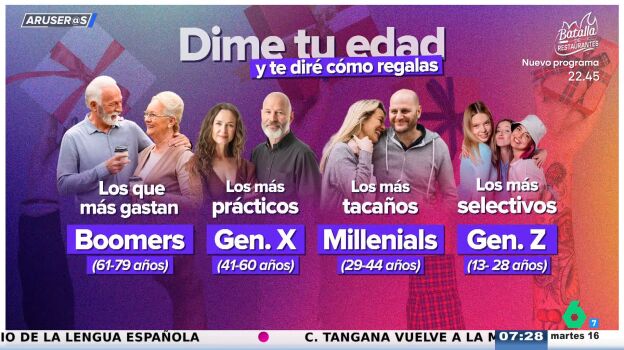 ¿Hay diferencias en los regalos navideños según la edad de las personas? Según cuenta Alba Sánchez, un estudio asegura que los boomers (de 61 a 79 años) son los que más dinero gastan en Navidad, mientras que los Z (de 13 a 28 años) son los más selectivos, prefiriendo regalar experiencias en lugar de objetos materiales.