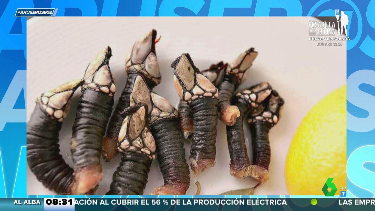 "Hay un alimento muy celebrado en nuestro país que repele a los consumidores europeos", anuncia Alfonso Arús haciéndose eco de un artículo de '20 minutos' que asegura que la prensa británica compara los percebes con un monstruo de Stranger Things.