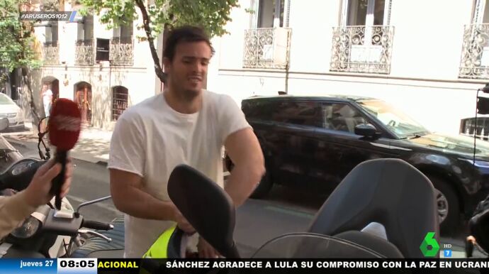 En concreto, los reporteros preguntan a Onieva por qué la hija de Isabel Preysler regresó en el vuelo en business y en silla de ruedas mientras que Onieva lo hizo en turista. "¿Eso es noticia?", pregunta Íñigo Onieva, que se niega a aclarar los rumores.