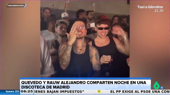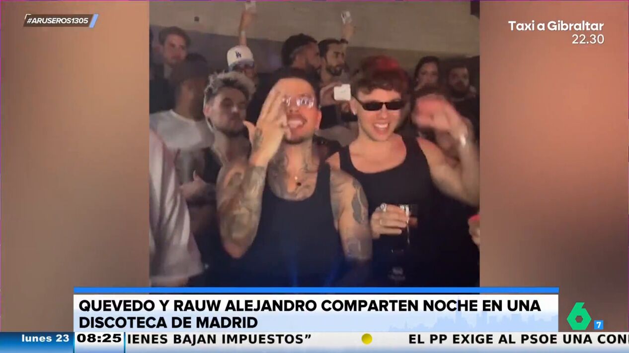 Quevedo y Rauw Alejandro han sorprendido a los presentes de una discoteca de Madrid, donde han acudido para pasar una noche de fiesta y, de paso, poner un adelanto del nuevo tema del canario. En este vídeo puedes escucharlo.