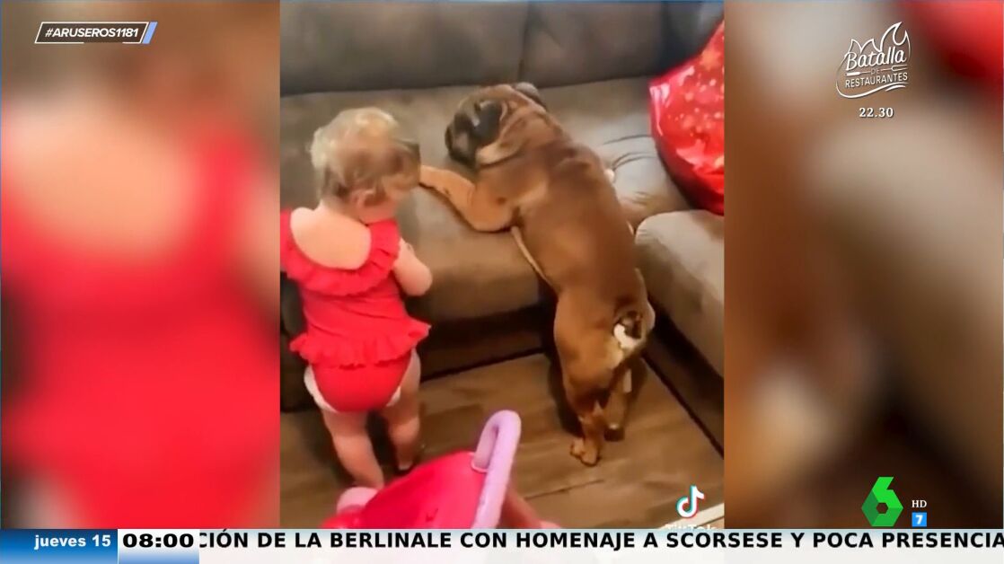En Aruser@s no pueden estar más entretenidos con este divertido vídeo viral en el que una niña y un perro, con piernecitas y patitas cortitas, intentan subirse a un sofá. Entre ellos surge una especie de competición digna de unos juegos olímpicos.