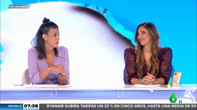 "Pero si quieres seguridad y protección te la puede dar tu pareja, ¿no?" pregunta María Moya a sus compañeros que le responden con una carcajada generalizada. "¿Tu pareja que está sobada, que no escucha absolutamente nada, con la babilla que le va cayendo, te va a proteger?", le responde el presentador de Aruser@s.