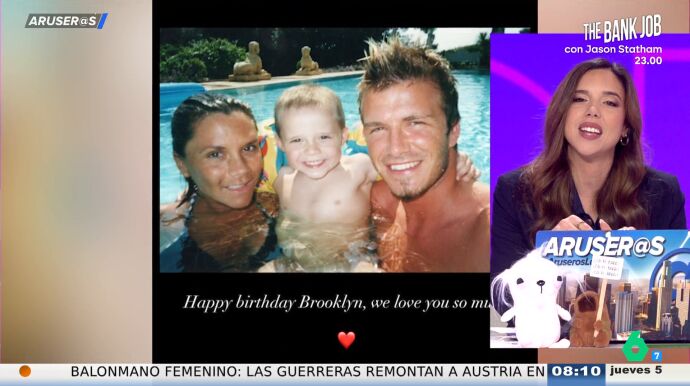 "Puede ser una forma de tender puentes y clamar las aguas, pero son felicitaciones bastante frías", afirma Tatiana Arús en el plató, donde enseña las felicitaciones, en las que se puede ver al matrimonio sonriente con un pequeño Brooklyn.