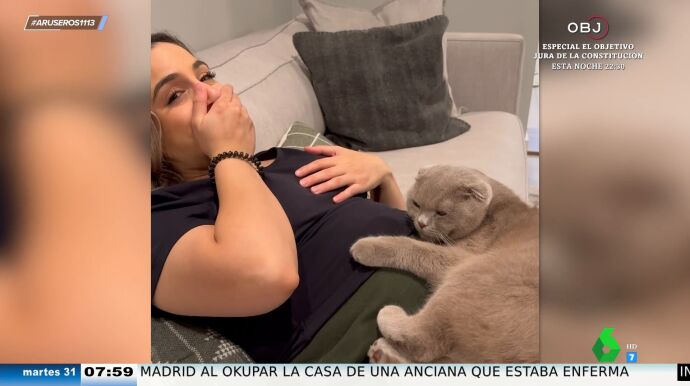El gato que protagoniza este entrañable vídeo emitido en Aruser@s, que no ha tardado en hacerse viral, está tumbado sobre la tripa de su dueña embarazada, pero su intención no es la de descansar, sino la de escuchar con atención.