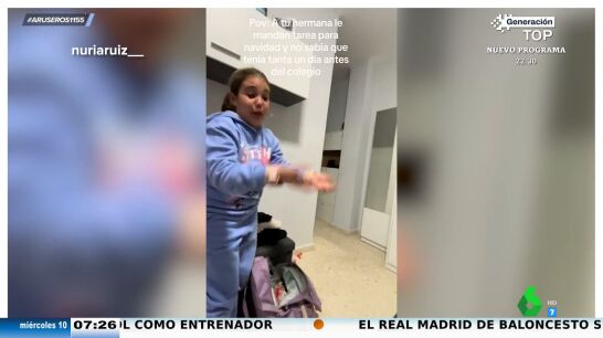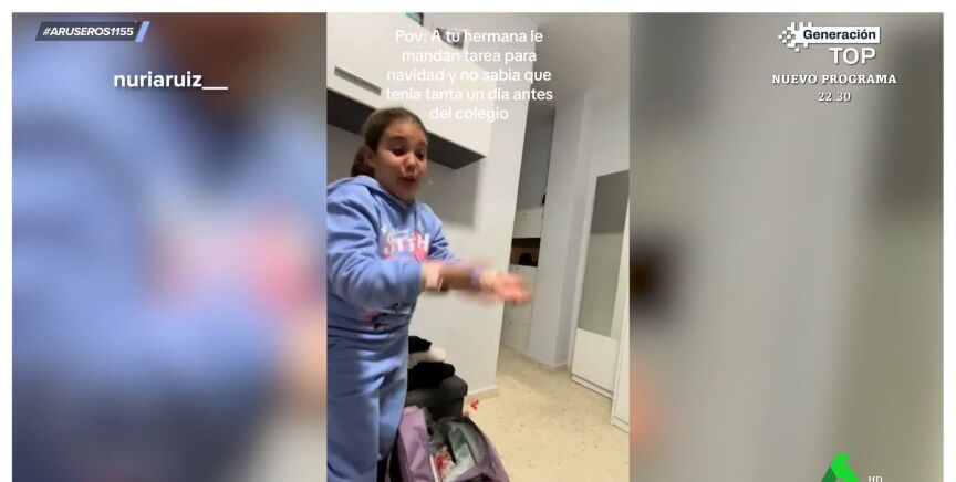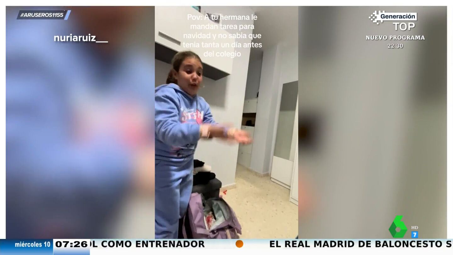 El sofocón de esta niña no viene motivado por ninguna pelea, ni ninguna bronca, ni nada parecido. Es su agobio el que habla por su boca. La pequeña ha dejado para el final todos los deberes que tenía que hacer durante las vacaciones de Navidad y ahora no sabe ni por dónde empezar. Las lágrimas que no dejan de brotarle de los ojos tampoco la están ayudando demasiado, como podemos ver en este vídeo viral emitido en Aruser@s y subido a TikTok por @nuriaruiz_