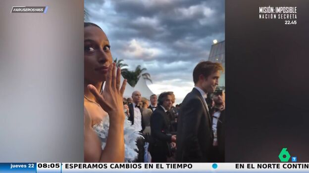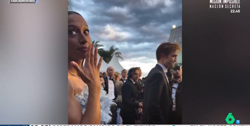 Tatiana Arús repasa en el plató de Aruser@s los momentos más destacados de la pasada jornada del Festival de Cannes, donde la española Ana Peleteiro ha compartido un vídeo en el que aparece junto a Robert Pattinson. La atleta no da crédito y se lleva la mano a la boca al ver cómo el actor de 'Crepúsculo' está a escasos metros de ella.