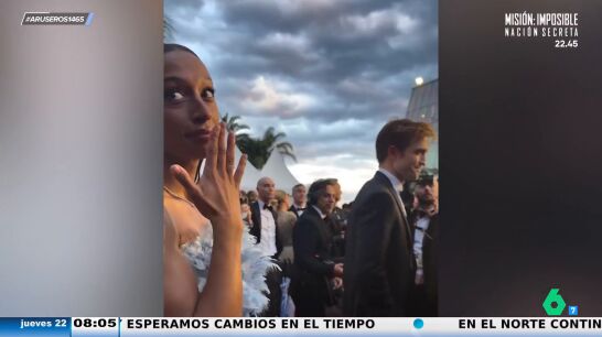 Ana Peleteiro no da crédito y se lleva la mano a la boca al ver cómo el actor de 'Crepúsculo' está a escasos metros de ella en el Festival de Cannes.