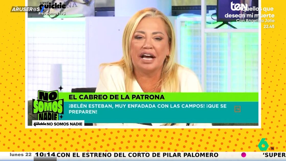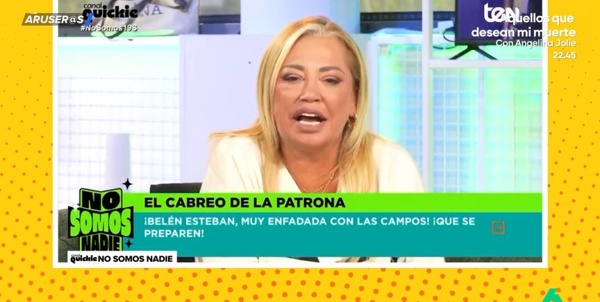 "De la mía, ni esto. La mía no se ha ido a un plató de televisión ni a hablar de su padre, de 'la' Campanario ni de su madre", dice Belén Esteban a Terelu Campos y Carmen Borrego a través de su programa en el Canal Quickie. Un 'zasca' que recoge Aruser@s.