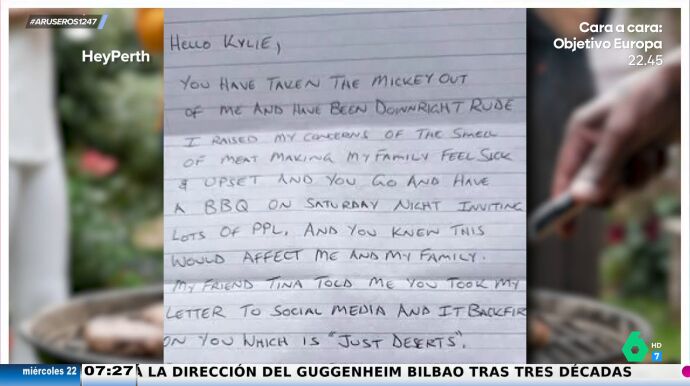 La amenaza llega después dos cartas amistosas y de que los vecinos de las barbacoas subiesen una de ellas a redes sociales ridiculizando la misiva en la que pedían que cerrasen la ventana cuando hiciesen una parrillada.