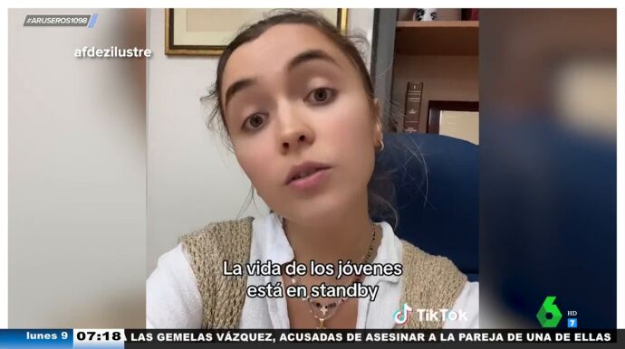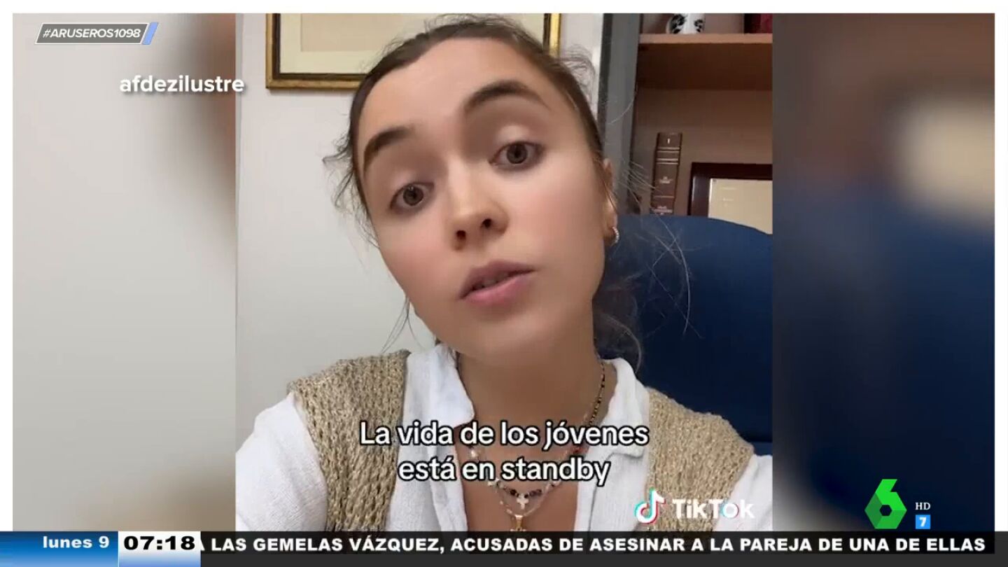 Una chica española se queja en este vídeo viral de los sueldos que tienen los jóvenes de su edad y hace una profunda reflexión al respecto. "Si tienes que compartir piso y la compra porque a ti solo no te llega, para ella no es un gran sueldo", explica Hans Arús antes de dar paso al testimonio de @afdezilustre.