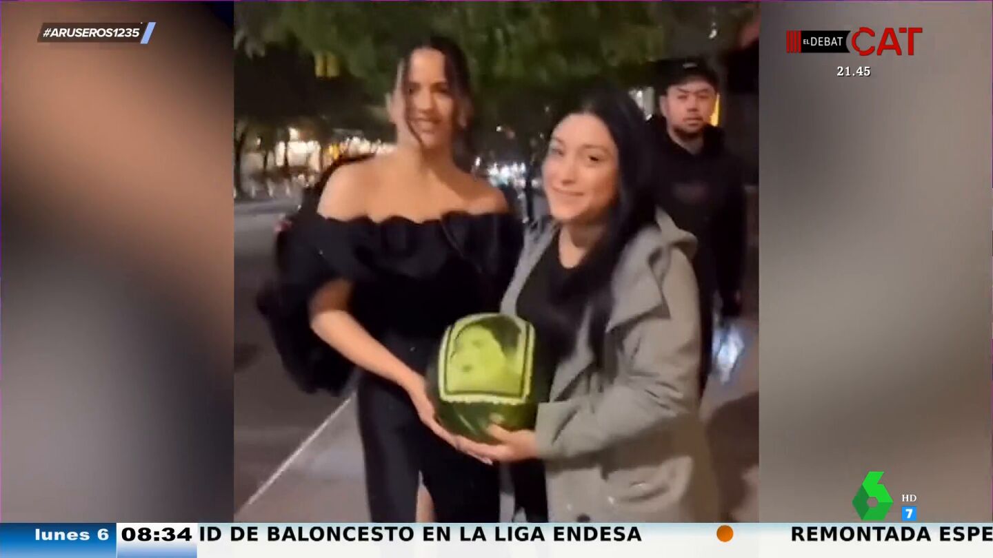 Regalan a Rosalía una sandía con su cara y Alfonso Arús alucina: "Parece que le han puesto paperas"