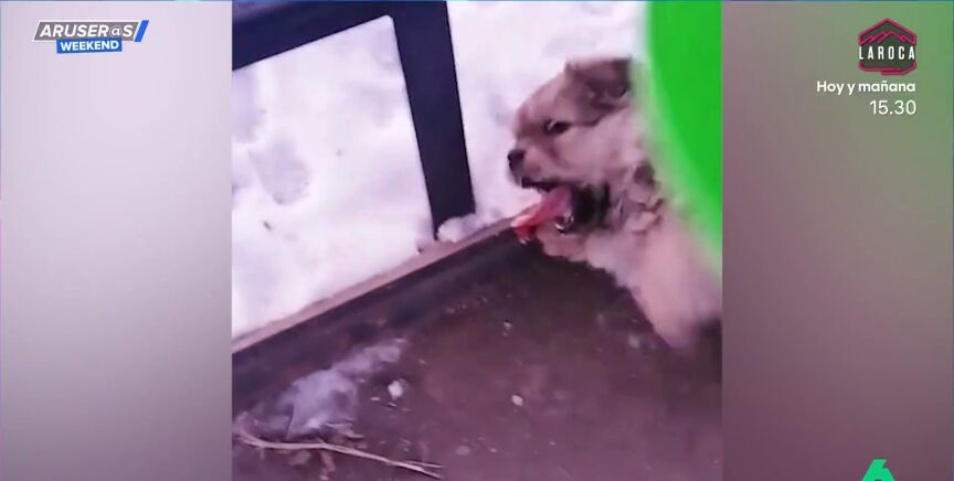 "Hay que tener mucho cuidado cuando hace mucho frío", advierte Elizabeth López en Aruser@s Weekend, antes de dar paso a este vídeo viral en el que vemos a un cachorro al que se le ha quedado pegada la lengua a una barandilla congelada.