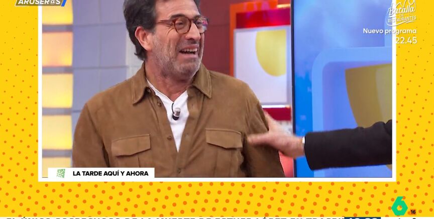 El famoso actor Antonio Garrido, conocido, entre otros, por su papel en la serie de Antena 3 'Los protegidos', visita el plató del programa de Juan y Medio en Canal Sur. El presentador le da un 'zasca' antológico que se cuela en Aruser@s.
