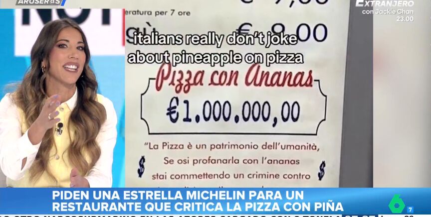 ¿Hay que echarle piña a la pizza o respetar la receta original italiana? La pregunta también ha llegado al plató de Aruser@s. "Veo un poco exagerado que por preservar la auténtica tradición le quieran dar una estrella Michelin", comenta Alfonso Arús entre risas.