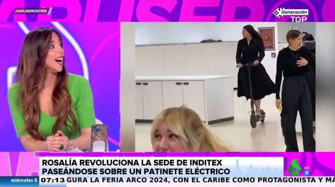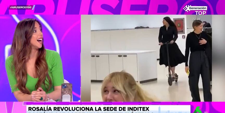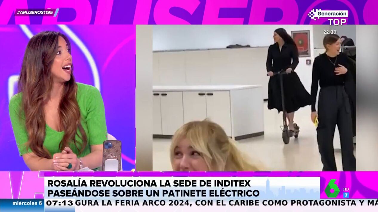 "Rosalía ha dado con la tecla", afirma Alfonso Arús. El presentador anima a la Familia Real española a tomar ejemplo de la cantante catalana y usar el patinete eléctrico en actos oficiales, como ha hecho ella en su visita a Inditex.